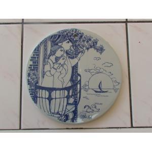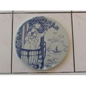 幸せそうな家族がベランダから朝日を眺める暖かい光景が描かれています。バックグラウンドは薄いグレー系でブルーとのコントラストが素敵です。