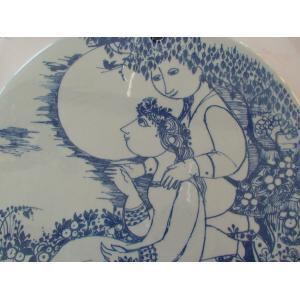 カップルが夕日を背にくつろぐひと時の光景が描かれています。シリーズの他の2作品と比較すると、子供の姿はありません。バックグラウンドは薄いグレー系でブルーとのコントラストが素敵です。